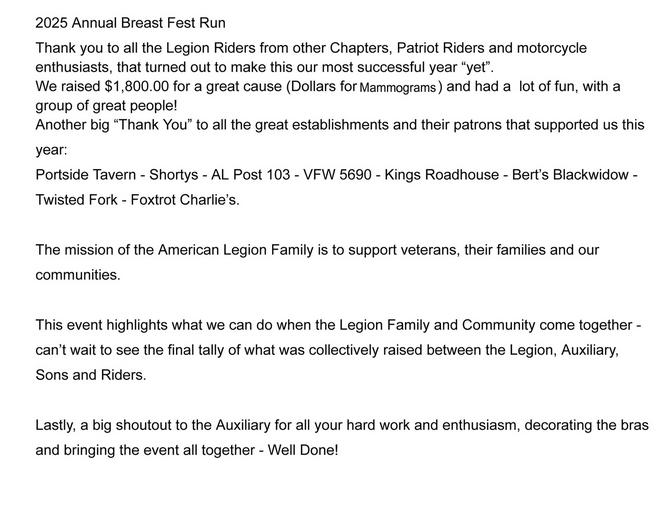 Welcome to the American Legion Riders Chapter 110. We are a group of American Legion members that have a passion for riding in support of our Military and their families, our community and each other.